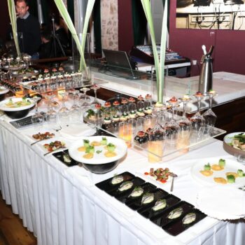Στη συνέχεια, ο Executive Chef Ηλίας Κακούρης και η ομάδα του ετοίμασαν ένα πλούσιο μπουφέ με δημιουργίες υψηλής γαστρονομίας, αναλύοντας το κόστος και τον τρόπο διαχείρισης των πρώτων υλών, δίνοντας έμφαση στη σωστή οργάνωση της κουζίνας, αλλά και την καλύτερη δυνατή αξιοποίηση των προϊόντων.